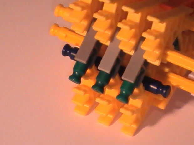 1: escopeta SS10: 32-33F19: utiliza un mech de tirachinas para disparar 10 barras verdes alineadas a los lados. Las varillas van a quedar entre dos bordes levantados para sostenerlas en lugar. Las rondas agregan hasta sobre el mismo peso que una bala