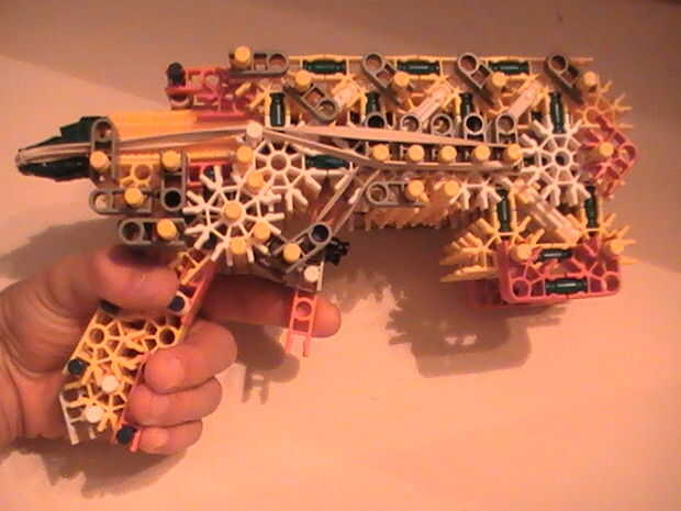 esta es mi versión modificada de escopeta pistola de kNeXFreek.Mejoras-No hay piezas rotas.-Revista es más delgada.-Más cómodo.-Disparador es más simple.-Parte más eficiente.