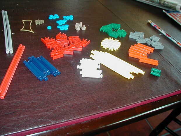 esta KVG pistola no dispara cualquier cosa pero se ve impresionantePaso 1: aquí están todas las piezas que necesita esta imagen es de mala para mal decir lo que dice8 barras rojo6 barras amarillas6 barras flexible grandes10 barras verdes o negras12 b