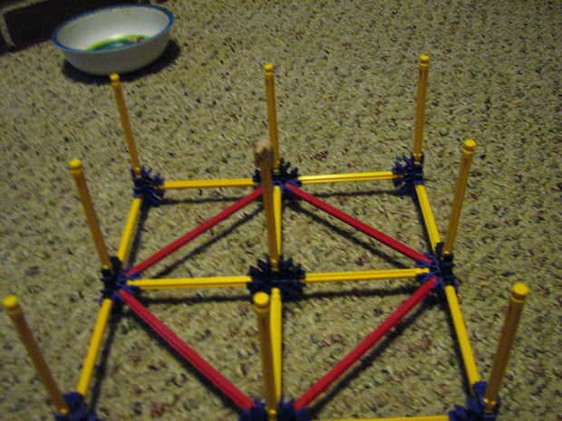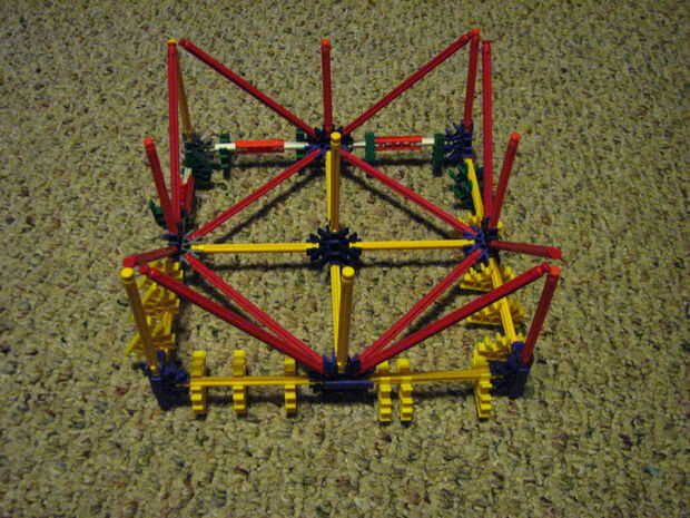 Bien, para construir el cuerpo, usar todas las piezas restantes. Necesita combinar 3 azul x azul 3d, 12 azul x púrpura y púrpura x púrpura 12. Entonces sólo tiene que conectar como en la imagen para el nivel central. La segunda foto es el primer nivel. El tercero es el nivel superior.