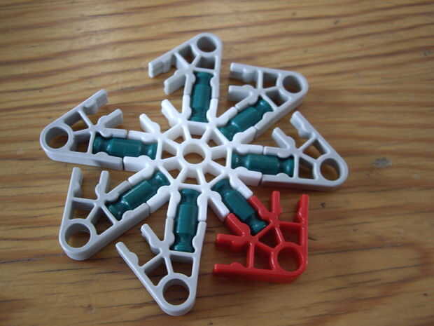 esto es un arma gigantesca KVG solía explotar planetas.Paso 1: Hacer la parte inferior. Poner las piezas juntas como en esta foto. Se trata de la parte inferior de la misma.Paso 2: Paso 2 Poner tres piezas rojo: uno en el centro y dos a los lados. Po