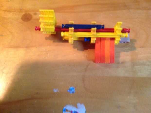 una pistola con el verdadero disparador de KVG minis.Paso 1: El mango Aquí es cómo construir el mango.Paso 2: La culata Ver fotos.Paso 3: activación Buscar en el pic.Paso 4: percutor Mirar la foto.Paso 5: Cañón Sus 3 capas para que no se confunda. Mi