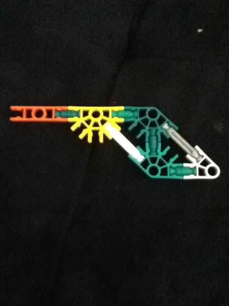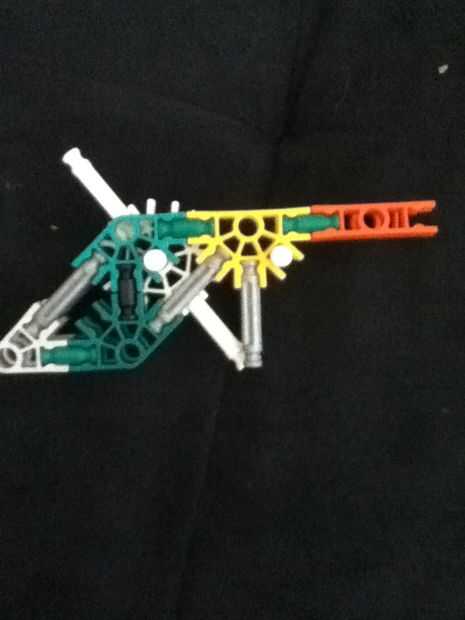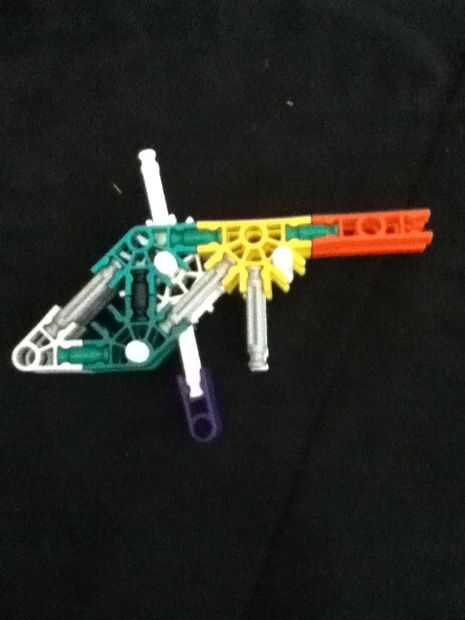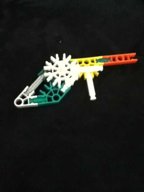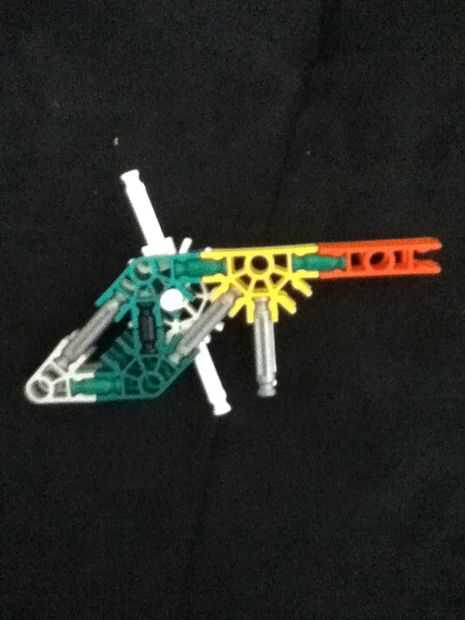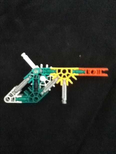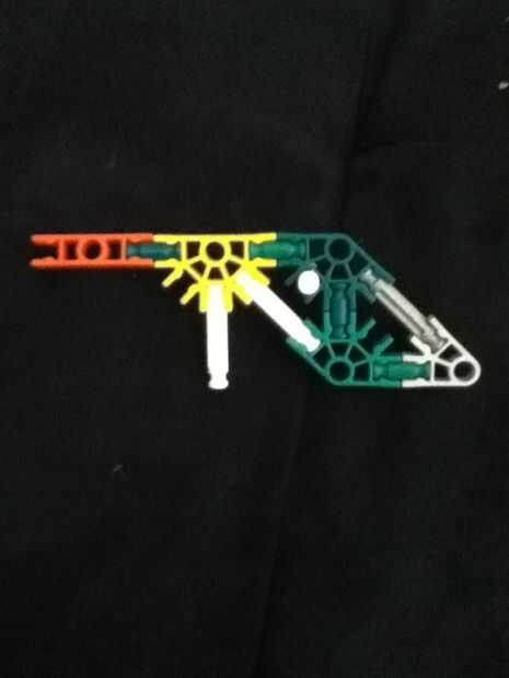 aquí es una pistola puede hacer que tiene alrededor de 100 piezas. Posee seis disparos y es fácil de recargar. En la parte de abajo necesita algo pequeños dedos en el gatillo.Paso 1: mango Paso 2: gatillo si usted no puede ver las dos piezas en la pa
