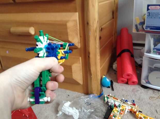 este arma es una pistola de 8 banda de goma tiro semiautomático con un giro, su hecho totalmente de K'NEX!!!!!! Cuando lo piensas bien es un muy simple mechinism, me topé con él mientras estaba tratando de disminuir el índice del fuego de un arma tot