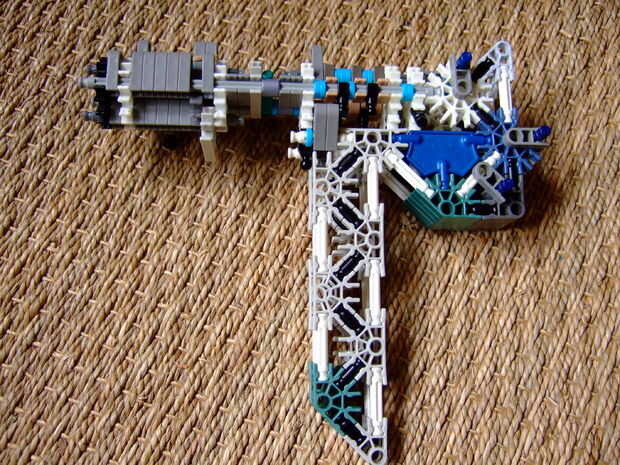 Tiempo para un arma de mi presentación! La Mini-Uzi.Es una pistola pequeña, así que no utiliza una gran cantidad de piezas, sin embargo utilizan algunas piezas rarasla gama varía, depende de cuantos balas que disparar, 1 gama de la bala es de unos 3-