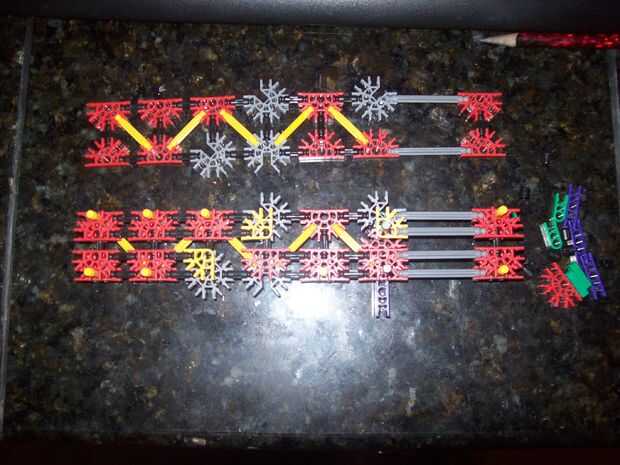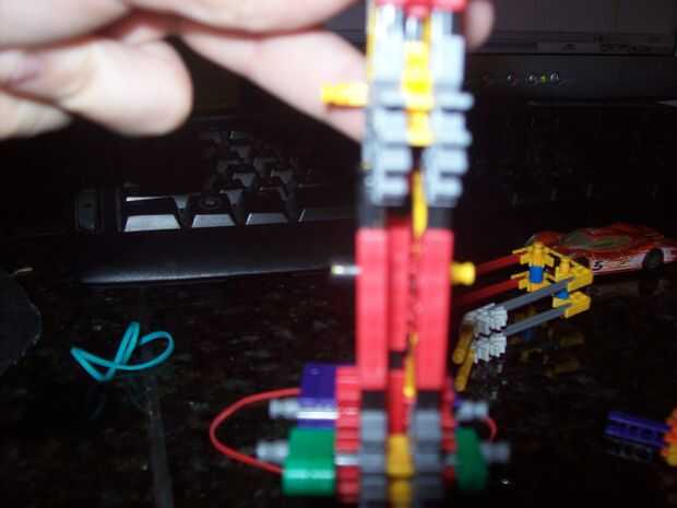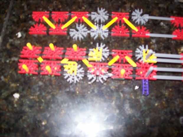 es un arma de simple KVG con desencadenar nuevos lo siento por pequeñas fotos usé mi teléfonoPaso 1: barril acaba de poner conectores rojo 11 en una barra rojaPaso 2: gatillo hacer este 2 conectores naranja sobre una barra blancaPaso 3: manejar! sin