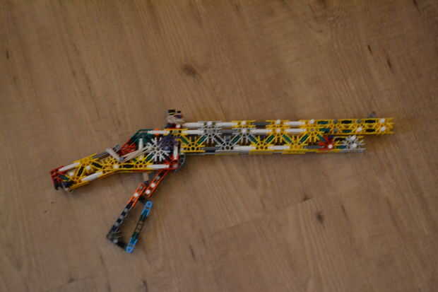 mi hermano ha intentado crear su propia pistola de KVG modelo pero fallado. tomé su diseño, añadir un trigger, tallo, barril y clip. Tomé todo aparte otra vez y descubrió que todavía parecía dulce con diferentes combos de piezas. no disparar a cualqu