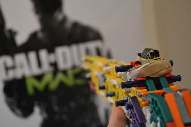 hello knexers! hoy te traigo mi g36c de KVG modelo del rifle de asalto.No dispara, pero se ve bastante coolDe Pro-se ve cool-casi exacto tamaño-archivos adjuntos-barril frontal cosa parece realista, se divide como el real-mags son extraíblesDe con-no