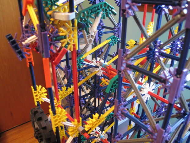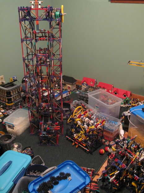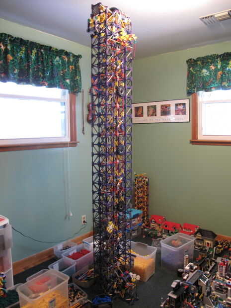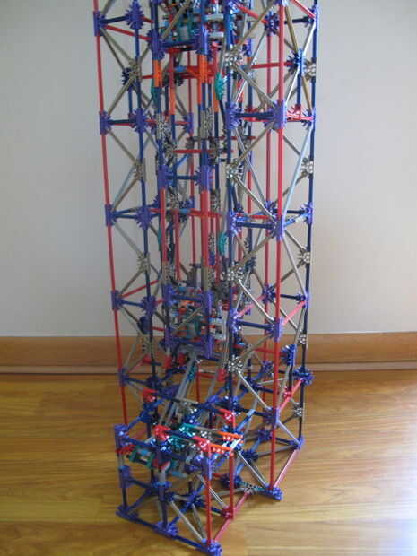 Hola a todos! Seguro que ha sido mucho tiempo desde que hice un Instructable. Esta elevación se basa en la elevación del paso a paso que estaba en un conjunto de KVG, excepto que no usa tanta fricción cuando los carros tienen que deslizan sobre barras de. En cambio, los carros están en pequeñas torres que se unen a los ejes. Por lo tanto, se puede hacer tan alta como quieras! Este ascensor fue construido originalmente en mi máquina de bolas de KVG inacabada (fotos abajo). Desde entonces, he mejorado y funciona mucho mejor que la original. :-) También, decidí haría que esta elevación en el esquema de color de alimentación torre grúa/Lost minas, principalmente porque estaba fuera de conectores amarillos en el momento de iniciarlo. :-P