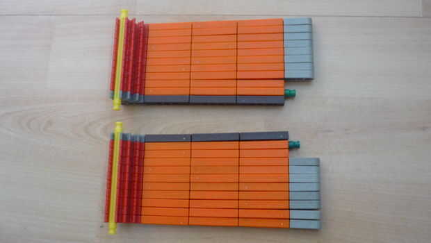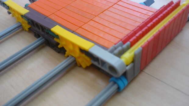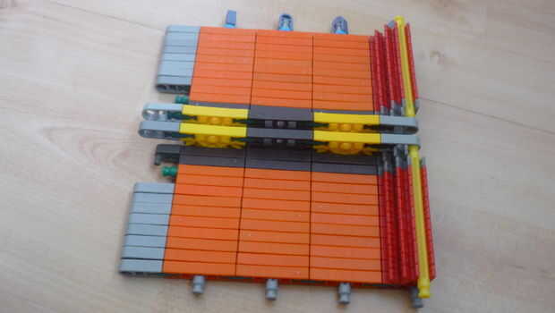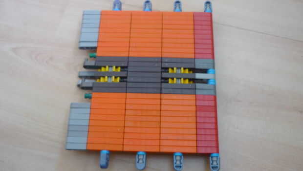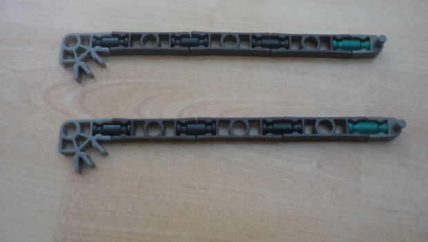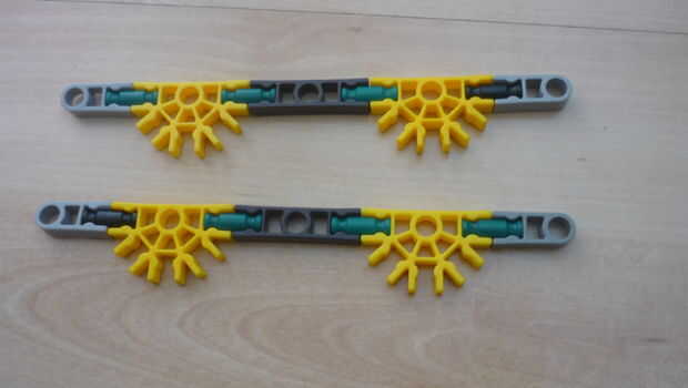 14. Deslice a un espaciador azul sobre cada barra gris y haga clic en un conector tan azul en ellos.