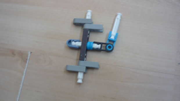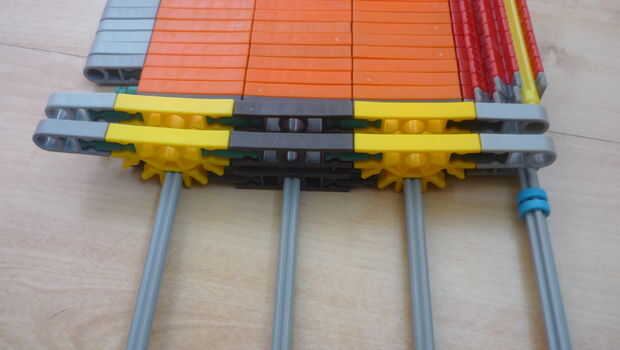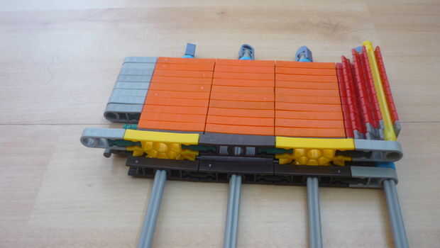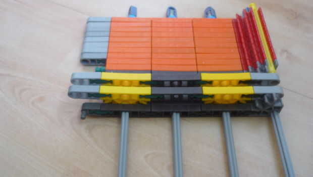 10. Deslice la pieza hecha en el paso 6 sobre las varillas gris.