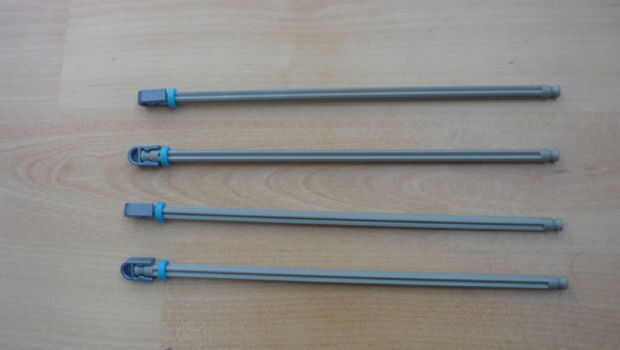 12. Deslice la parte hecha en foto 4 sobre las varillas gris.