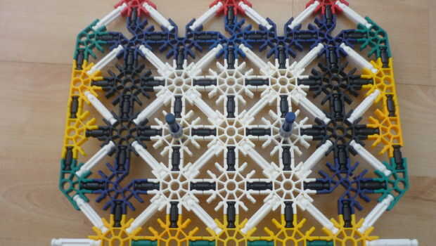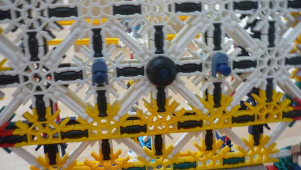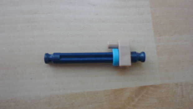 4. Deslice las dos piezas que hiciste en la foto 3 en los conectores de copo de nieve y deslice a dos distanciadores gris