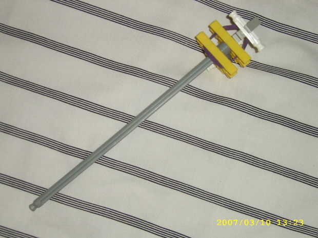 Ahora sólo Deslice el cuerpo de él encima de la barra gris y conectar la goma alrededor de él como se muestra.