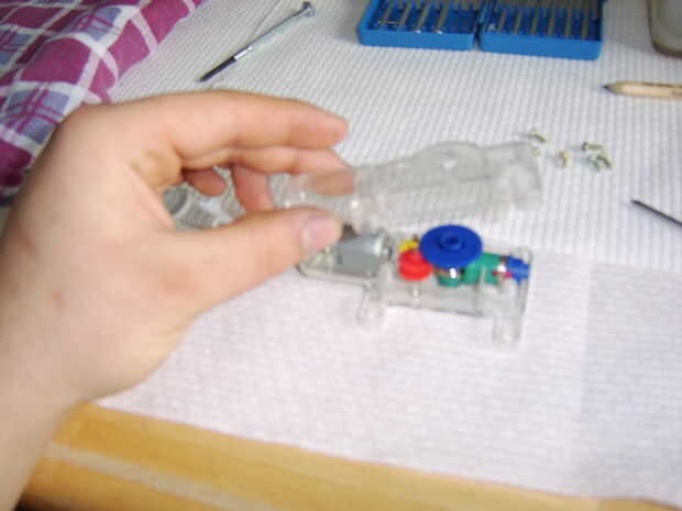 -el motor de salida de la serpiente, los cables algo pegados y torcidos alrededor cerca el orificio de salida del cable.