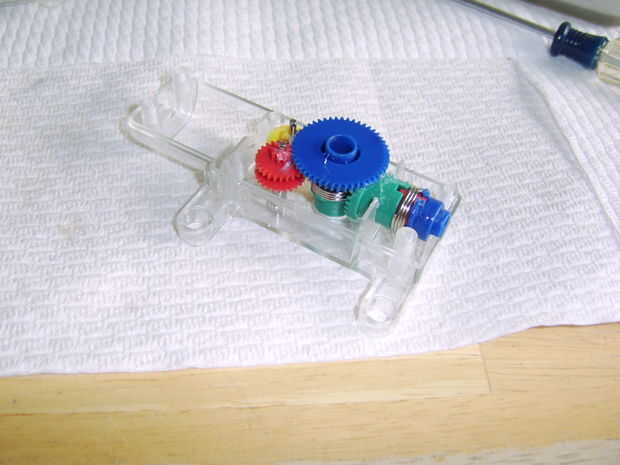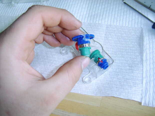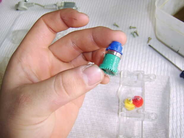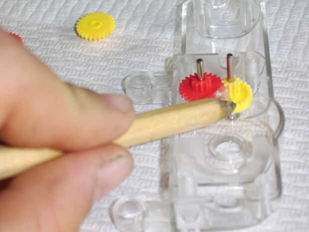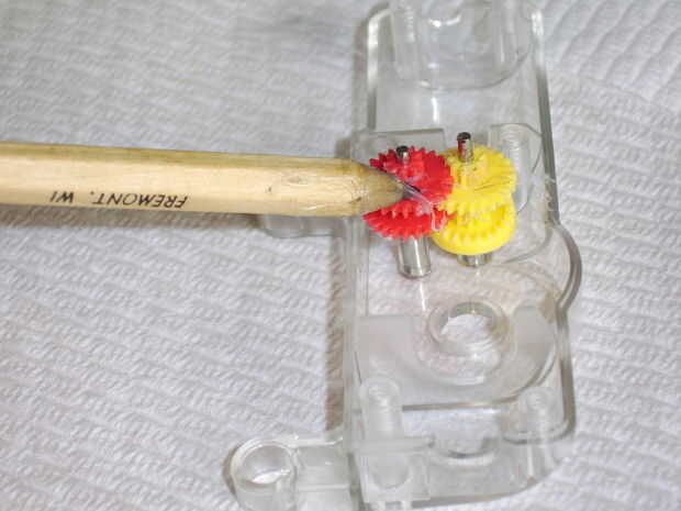 -Colocar una "capa" de engranajes de reducción y sumergir el lápiz en el Dab Vaseline(petroleum jelly) un poco en los engranajes. No demasiado, justo!