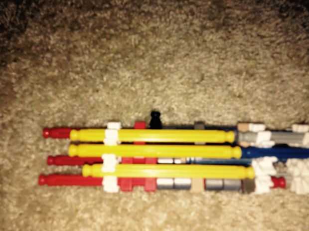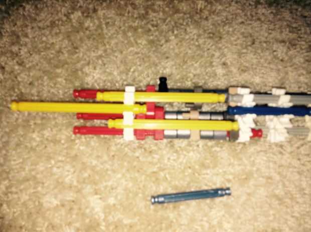 esto es una pistola de carga automática que es muy sencilla.Dosis no uso un gatillo pero tire el pasador y suelta para disparar.Paso 1: barril Construir esto (no pude encontrar mi blancos usé 3 amarillos en lugar de blancos)Paso 2: Cargador de Auto b