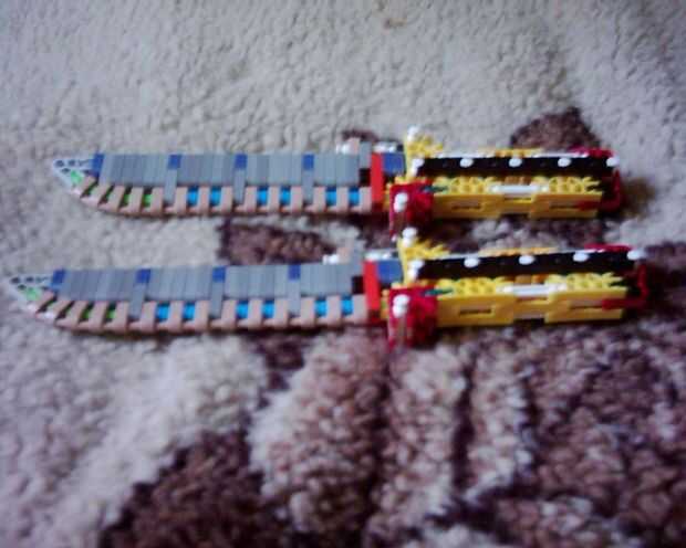 Tal vez hacer algunas más o utilizarlo como una bayoneta. Si desea que una bayoneta, cambiar los dos conectores rojo en el extremo de la manija a amarillos. También necesitará cambiar a un azul en la hoja por un conector gris.