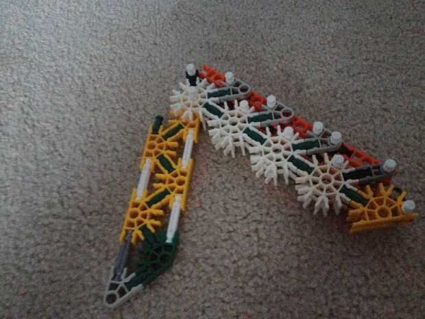 puede construir esto sin partes que no vienen con la bañera normal KVGPaso 1: hoja de Juntar la hoja como esta y guardar las bandas de caucho para más adelante entonces ponen un palo blanco a través del agujero como estePaso 2: manejar ¡ Las 2 piezas