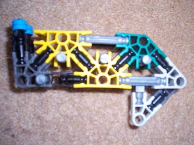 esta es el arma más poderosa de K'NEX creo que porque puede perforar 2 cerveza o COLA puede y destruir disco compacto fácilmente debido a la muy fuerte 4 gomas (yo uso 2 ligas diferentes) también incluye una gran revista para 5 K'NEX largo gris afila