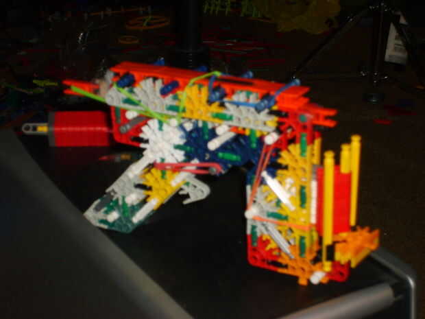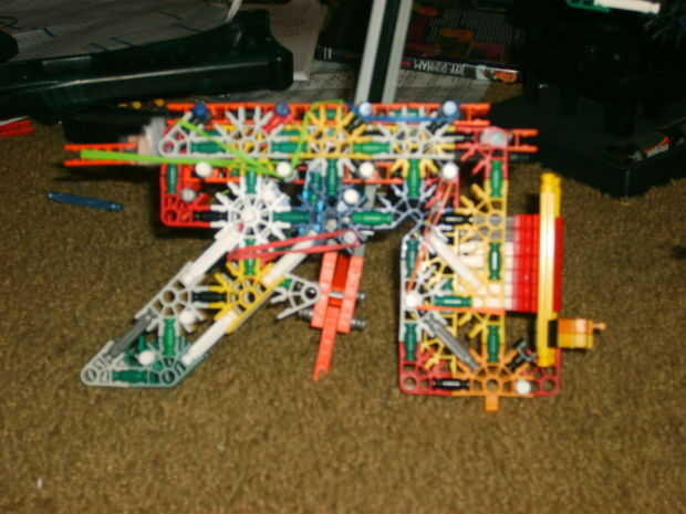 es un arma de simple KVG con desencadenar nuevos lo siento por pequeñas fotos usé mi teléfonoPaso 1: barril acaba de poner conectores rojo 11 en una barra rojaPaso 2: gatillo hacer este 2 conectores naranja sobre una barra blancaPaso 3: manejar! sin