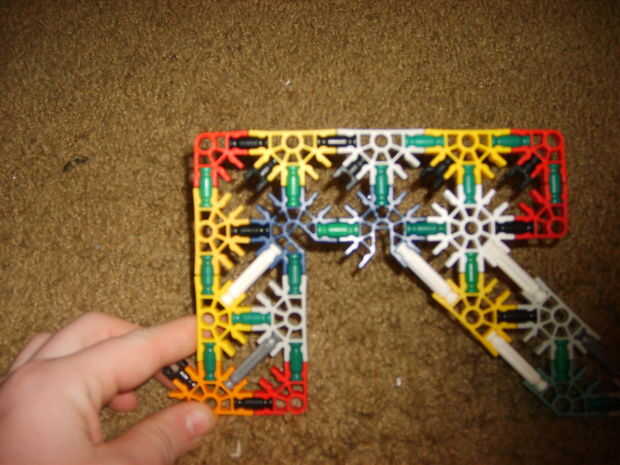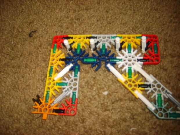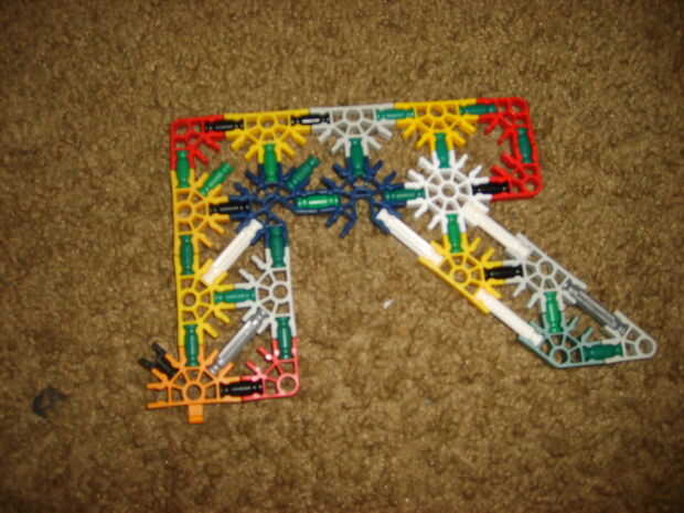 es un arma de simple KVG con desencadenar nuevos lo siento por pequeñas fotos usé mi teléfonoPaso 1: barril acaba de poner conectores rojo 11 en una barra rojaPaso 2: gatillo hacer este 2 conectores naranja sobre una barra blancaPaso 3: manejar! sin