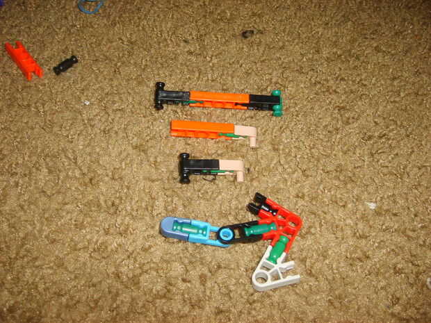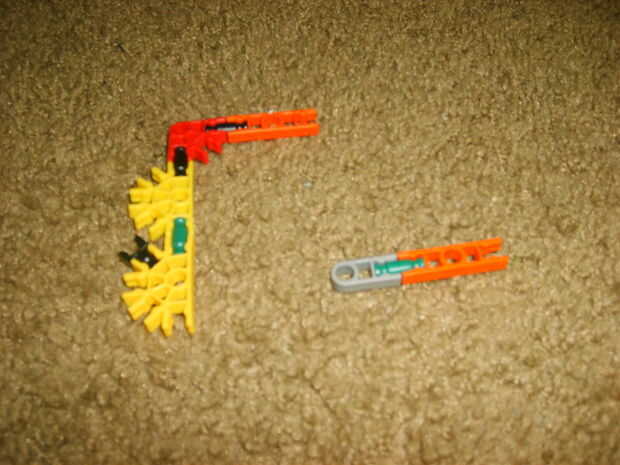 es un arma de simple KVG con desencadenar nuevos lo siento por pequeñas fotos usé mi teléfonoPaso 1: barril acaba de poner conectores rojo 11 en una barra rojaPaso 2: gatillo hacer este 2 conectores naranja sobre una barra blancaPaso 3: manejar! sin