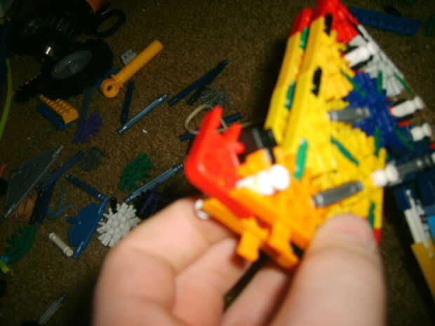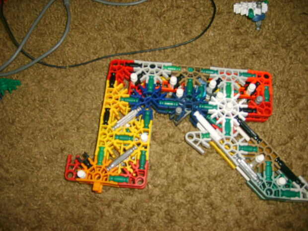 es un arma de simple KVG con desencadenar nuevos lo siento por pequeñas fotos usé mi teléfonoPaso 1: barril acaba de poner conectores rojo 11 en una barra rojaPaso 2: gatillo hacer este 2 conectores naranja sobre una barra blancaPaso 3: manejar! sin