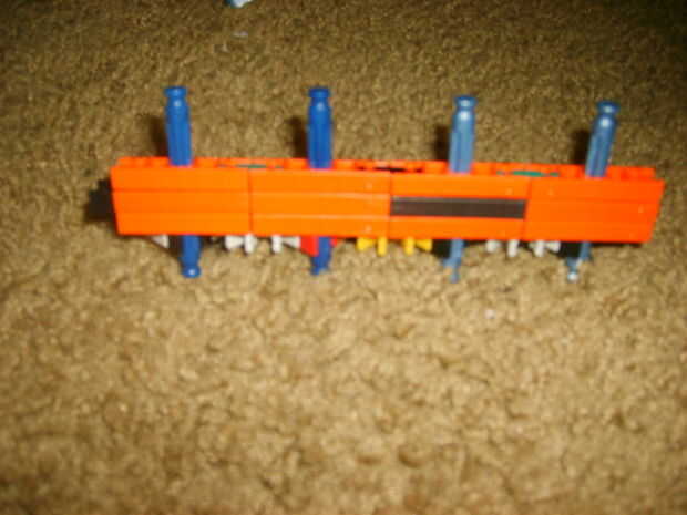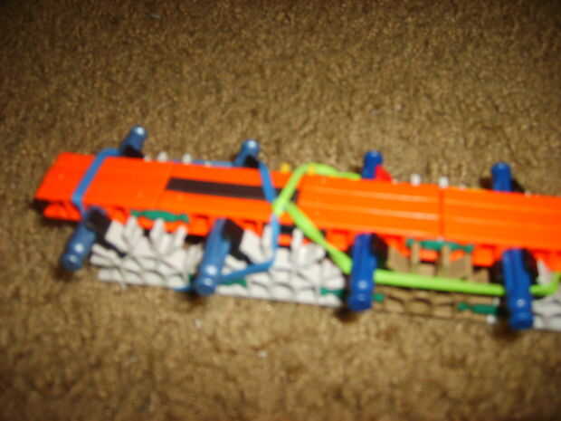 es un arma de simple KVG con desencadenar nuevos lo siento por pequeñas fotos usé mi teléfonoPaso 1: barril acaba de poner conectores rojo 11 en una barra rojaPaso 2: gatillo hacer este 2 conectores naranja sobre una barra blancaPaso 3: manejar! sin