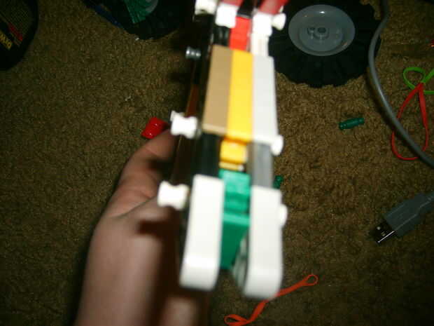 es un arma de simple KVG con desencadenar nuevos lo siento por pequeñas fotos usé mi teléfonoPaso 1: barril acaba de poner conectores rojo 11 en una barra rojaPaso 2: gatillo hacer este 2 conectores naranja sobre una barra blancaPaso 3: manejar! sin