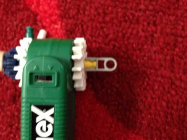 esta es una de las pistolas más pequeñas cada vez. Lo hice cuando llegué realmente aburrido un día. Realmente tiene un percutor y un gatillo! La pistola entera mide aproximadamente 2 pulgadas. Puede disparar pequeños pedazos verdes o blancos. Preferi