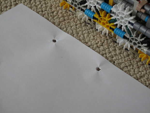 Felicidades, ahora termine con nuestra perforadora de 2!!!!!! Ahora que haya terminado, usted querrá usarlo. Así, que algún papel y perforar los agujeros en él (fotos abajo). No importa qué tipo de papel usar, pero no usar algo que es demasiado grueso (como cartulina). Por supuesto, puede agudizar las barras más hacerlo punch por cartón o más hojas de papel. :-)
