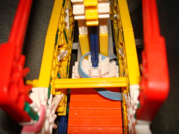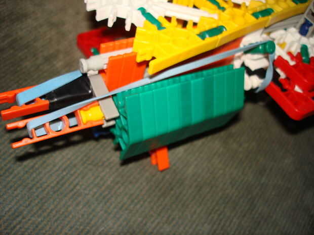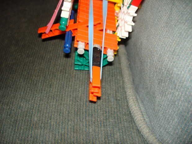 OK primero tomar la barra azul de la revista al lado y poner la banda de goma alrededor de los conectores blancos. a continuación tome a la culata. Ahora poner el perno de la leña y la bomba en el barrel.then colocar la goma alrededor de la pin.put de fring una segunda banda de goma de la bomba y ponerlo alrededor de la parte inferior de los conectores blancos.