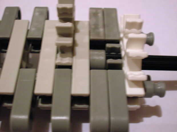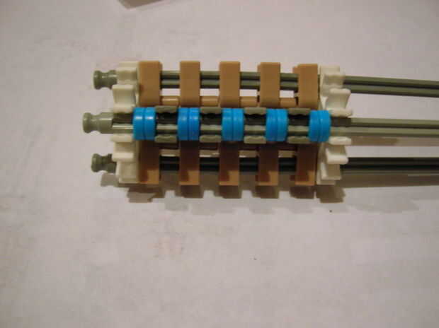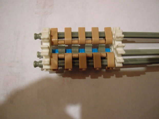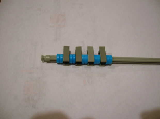 1: barra gris con 10 separadores azules y 4 conectores gris decapitados.
