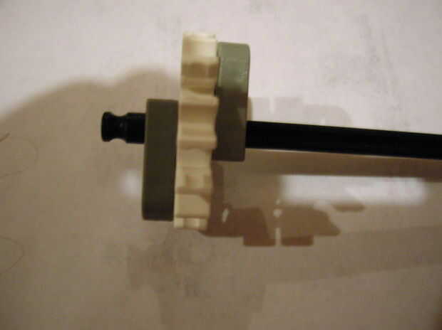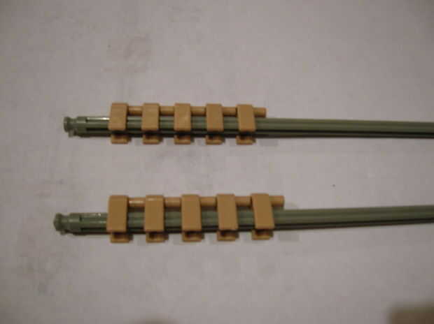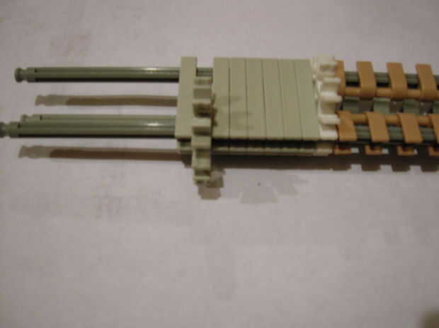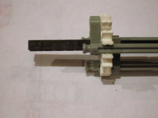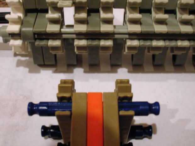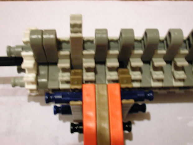 8: clip del último paso en la parte posterior del cañón y añadir un conector naranja para las bandas de goma.