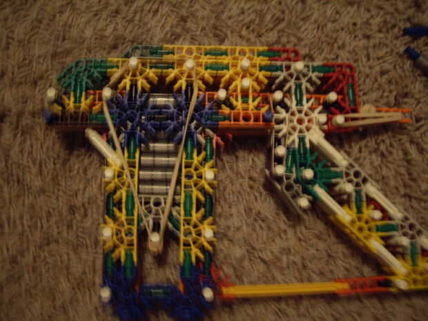 primero, esto no es completamente mi arma de fuego. Me pareció lo construyó y lo modifico. Crédito para el mech de disparo va a Charger18 Karma que también nombró. Esta arma se llama R45-S. Este arma tiene una distancia aceptable de 10-25 según cortarla, tiene también la eyección automática de la cáscara. Oh y este es mi primer Instructable!!!!!!