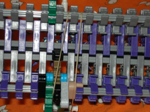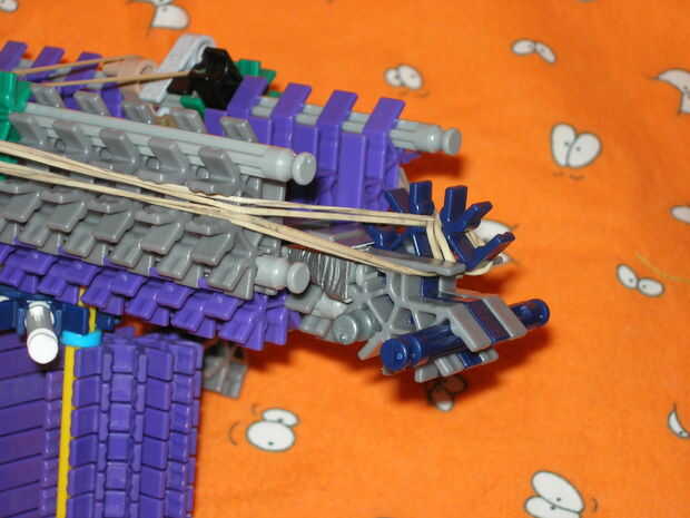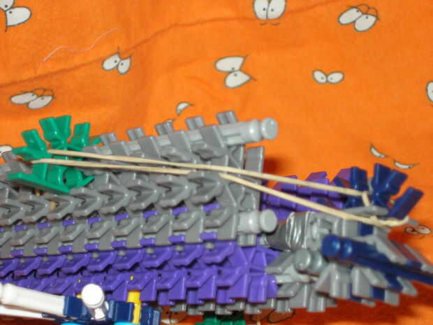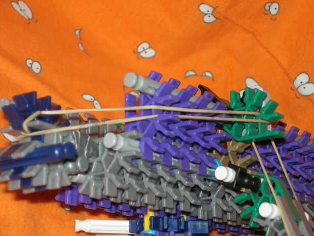 -la venda de elástico en el espacio especial de conector disparador sobre la parte superior y debe terminar al lado del conector verde