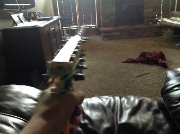 Hey chicos,Esta es mi arma de KVGdispara más de 120 pies!!!!Creo que es el más de gran alcance KVG pistola nunca, si alguien sabe más de gran alcance KVG pistola por favor me manden una imagen o instructivo.dispara con 20 bandas de goma y es muy fáci