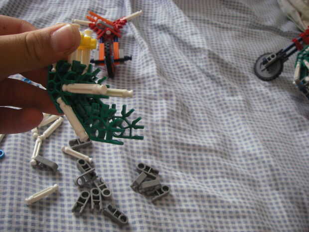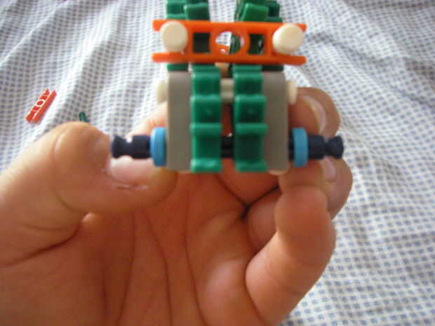 una moto, tiene un soporte y es bastante pequeña.Paso 1: Lista de piezasBarras deVerde - 3Blanco - 8Azul - 6ConectoresGris 1 slot - 2Naranja - 4Rojo - 3Verde - 2Amarillo - 3Azul 3D - 2VariosEspaciadores de azul - 5Espaciadores de gris - 1Ruedas de ta