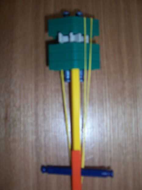 esta es la secuela a mi ballesta A1 menor. Esta ballesta es mucho más potente, porque pueden tirar 30 + pies (dependiendo de la rbs), puede abollar cartón (tenga en cuenta, es lego, KVG no afilada) y es muy exacto. La única pega es que esta ballesta