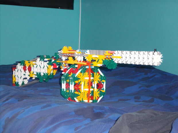 este es mi smg KVG que hice algún tiempo atrás. No es demasiado potente y precisa a larga distancia pero es ligero y fácil de llevar.Utiliza barras de blanco/de plata que caben en la revista pero la mejor anmmo son las barras de amarillo/marrón que p