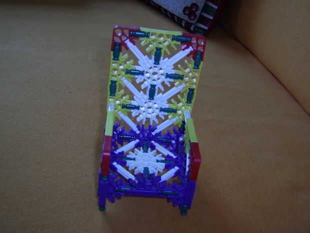este cuchillo KVG es muy fácil de hacer y es bastante fuerte. Necesita: 10 conectores azules, 1 conector blanco oscuro, 1 conector verde, 3 conectores amarillo, 2 conectores naranja, 2 barras amarillas, 2 barras blancas, 3 barras verdes, 1 barra roja