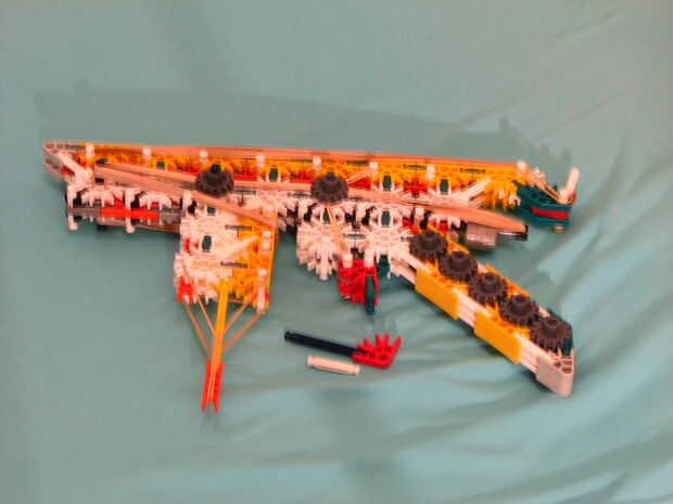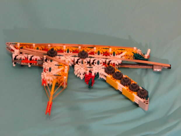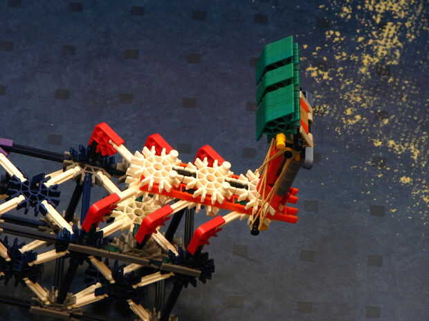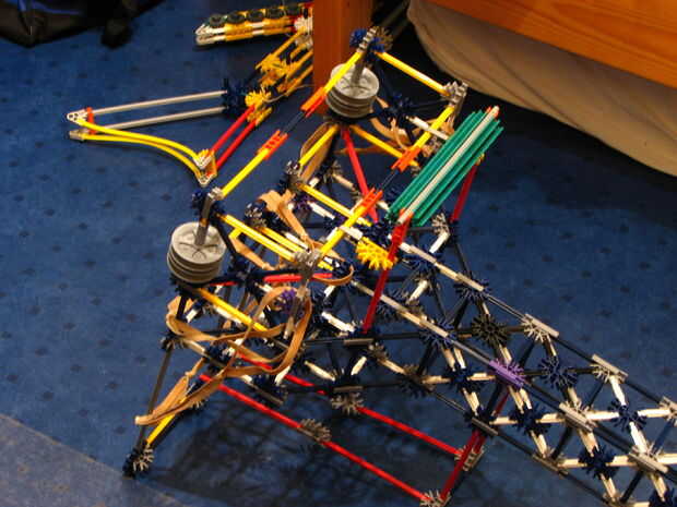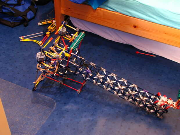 El doble gatillo V1 dispara alrededor de 40 pies con la parte inferior, y (creo) 60 pies con la parte superior, si utilizas bastante elásticos.