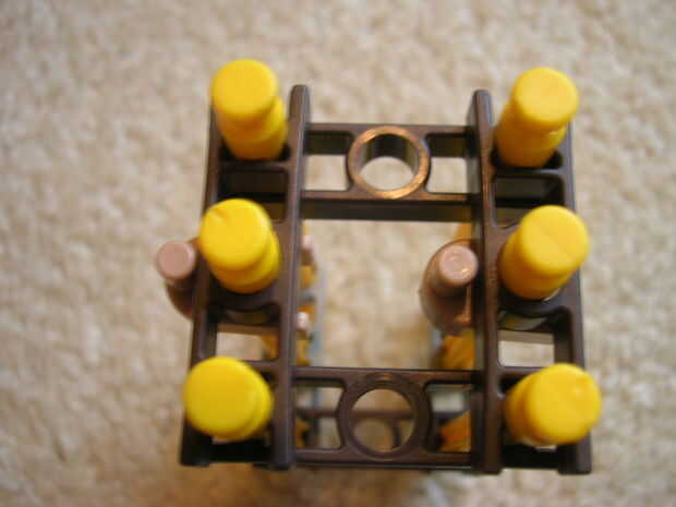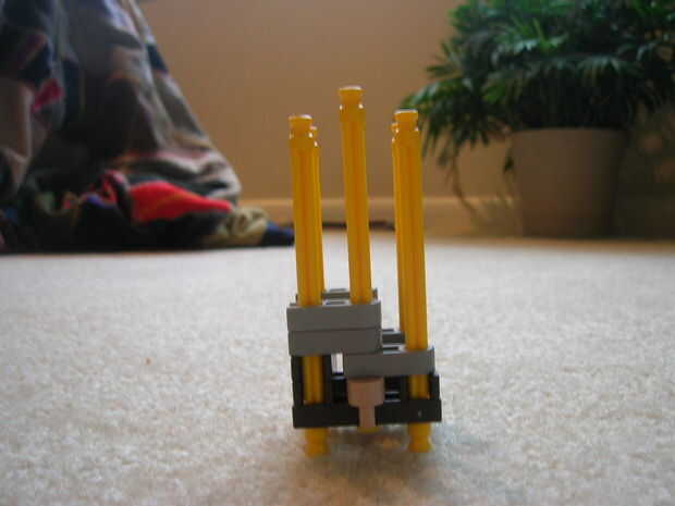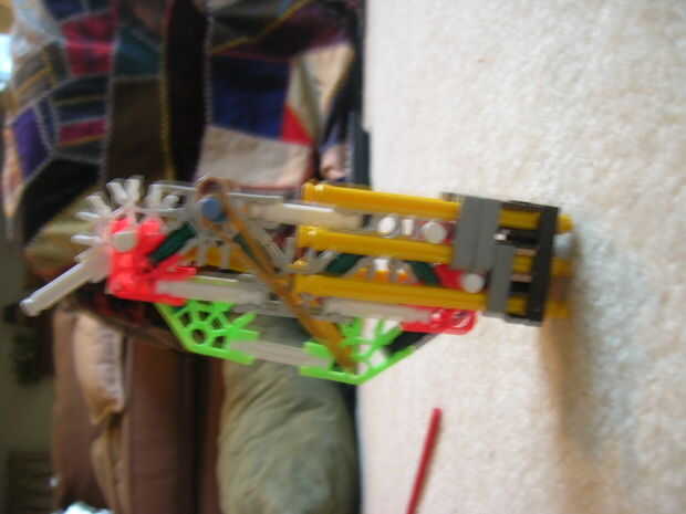 es un arma de simple KVG con desencadenar nuevos lo siento por pequeñas fotos usé mi teléfonoPaso 1: barril acaba de poner conectores rojo 11 en una barra rojaPaso 2: gatillo hacer este 2 conectores naranja sobre una barra blancaPaso 3: manejar! sin