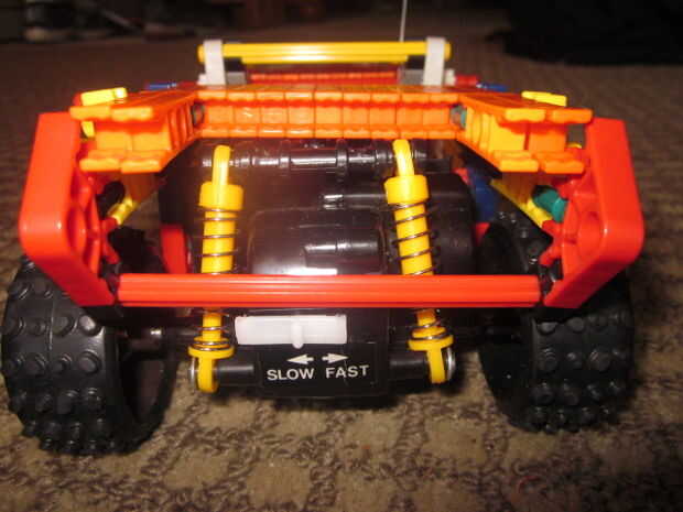 por fin está aquí las instrucciones!Paso 1: El chasis Construir esta la Base del cochePaso 2: El eje trasero y suspensión Construir estaPaso 3: Parachoques trasero y Spoiler trasero Make ThisPaso 4: Cubierta de motor Las barras naranja son las barras