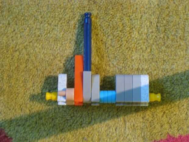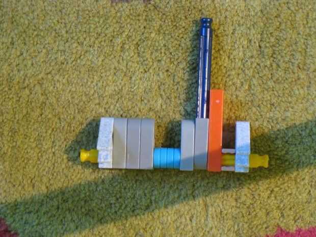 Paso 1: barril Paso 2: manejarPaso 3: montaje Primero la pieza marrón y en el trozo de espiral. Luego agregar el pedazo corto gris. Por último añadir el mango poniendo la perilla de la pieza marrón en la abertura más grande en el mango.