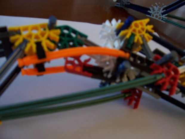 1+2.Sorry chicos tienes que sacar la varilla del amarillo de los conectores rojo, debe ser roscada a través de este, broche de presión en. 3 + 4.Here es cómo esto está conectado. 5 + 6. (Optianal) Se trata de una decoración que le da más estabilidad, hacer dos de estos. Fije como esta.