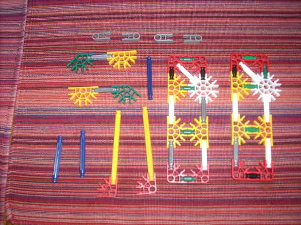 este es mi primero. Esta pistola KVG es sencilla de hacer y las fotos son bastante auto explainetory. el arma es muy potente y precisa.Paso 1: La acción Necesitarás: 3 barras rojas, 6 barras amarillas, 6 barras azul, 6 conectores rojo, 6 conectores a