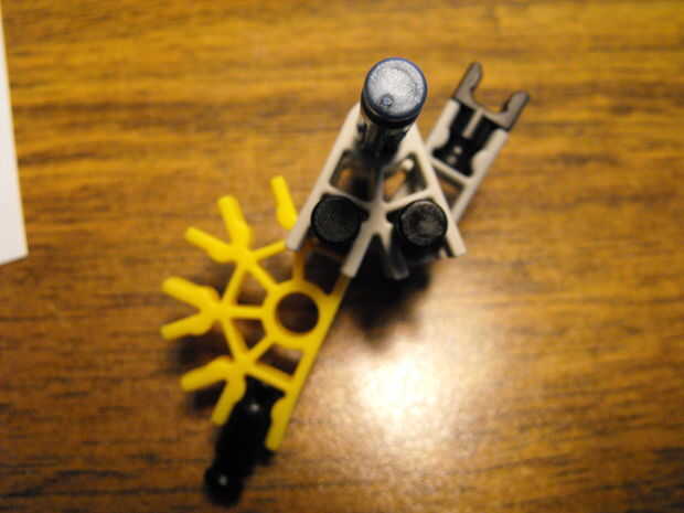 esto es, de lejos mi mejor arma diseñado que he hecho. es muy precisa y con una buena banda de goma tiene un buen rango (40-50 pies). la acción es duradera y el mango diseñado para parecerse a los springfields. está cargada y dispara barras blancas.