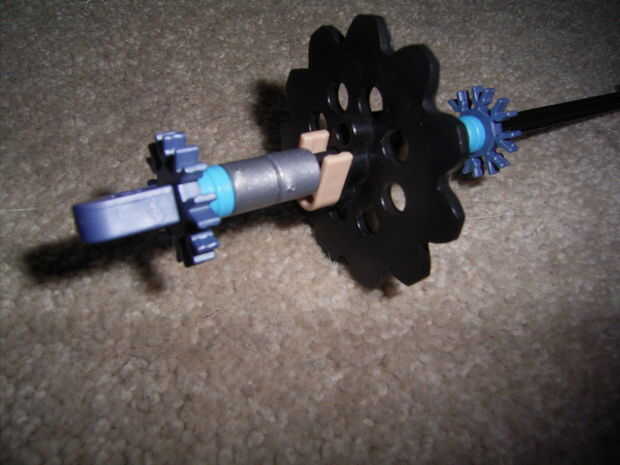 Si el andamio es una barra roja micro a través de entonces el eje de la marcha debe tener este aspecto. El motor es conectado en la varilla negra.